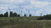 Big Bluestem, Andropogon gerardii, is one of three dominant grasses of the tallgrass prairie. Besides prairies, it can also be found in savannas and along roadsides. It is often 6-8 feet tall when fully grown.