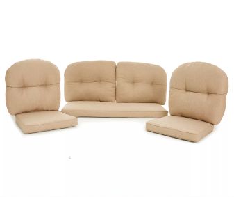 Neutral tan lines each cushion as plush polyester filling comforts you and guests. Rounded back cushion design with button tufting adds to this set's fashionable look, making it perfect for maintaining or updating your patio's appearance.