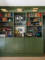 May 14, 2024 - Rather than stick her clients with ... treatment with an arched facade made of plywood. One bookcase covers a closet door and slides to the side, while two others are stationary....