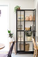 March 1, 2024 - Homeowners Sasha Faiz and Andrew Ghose say one of their favorite IKEA hacks in their home in Toronto is using a BILLY bookcase as a dish cupboard in their kitchen. “Its narrow profile made it space-efficient, but also practical and beautiful,” Faiz says. The duo chose glass doors, added mismatched knobs, and added black trim to the top to give it extra grandeur.