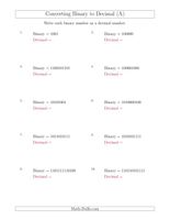 Decimal and Binary Conversion Worksheets