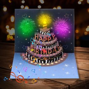 These one-of-a-kind cards don’t just pop up—they light up and play a perfectly paired tune when opened for an extra special surprise. Featured Song: Instrumental version of "Happy Birthday to You"