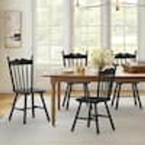 Arriving as a 6-piece set, this armchair enhances your dining room with elegant, contemporary flair. It features a classic Windsor-inspired design that consists of a curved silhouette and angled spindles for a dynamic modern touch.