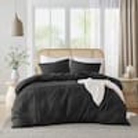 Amazon.com: JELLYMONI Black Duvet Cover Full Size - 100% Washed Cotton Linen Like Textured Comforter Cover, 3 Pieces Breathable Soft Bedding Set with Zipper Closure (Black, Full 80"x90") : Home & Kitchen