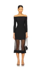 Looking for a double lined midi black dress with long sleeves (form fitting)