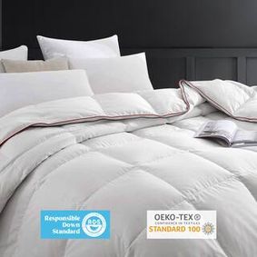 Manufactured to the highest European standards, our comforters are chemical and allergen free, and our down is humanely harvested so you and your family can sleep with a clear conscience, knowing you've sought out the best product on the market. Our guarantee: cruelty free harvested down, Oeko Tex, Downafresh Greenline and Nomite certified. Here you'll find King size goose and duck down comforters in lightweight and all-year fill.