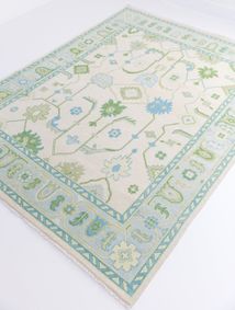 Bespoke Hand tufted Olive Green White Border sage green rug Abstract green rug Modern Rug Handmade Rug Bedroom Living Room · Modern Turkish blue with cream Oushak Made to Order In Any Size Geometric Knotted Modern Oushak rug/ large area/sage/muted oushak rug.