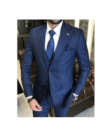 Royal blue pinstripe tailored fit men wedding suit 2719