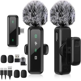 2 Pack Wireless Mini Lavalier Lapel Microphone for iPhone,Android Phone(2 in 1) - 65ft Cordless Clip on Dual Mics with Noise Reduction 6H Working Time for Video Recording Vlogging, YouTube,(Black) ... HEHOTTC Mini Wireless Lavalier Microphone for iPhone, iPad, Android Phone - Noise Reduction Lapel USB C Bluetooth Mic for Recording, Clip on Omni Lav Mic for Video Recording, Tiktok, YouTube, Vlog