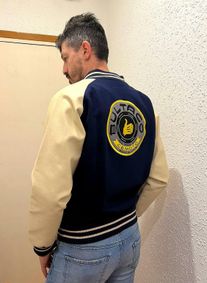 While the traditional bomber has some bulk to it, slimmer ones are perfectly nice too. A bomber can come in nylon, leather, wool, cotton, or... well, anything else, with or without a fur collar, elastic waistband, or elastic neckband. A traditional letterman would have a wool body and leather arms. They come in a variety of models, many of which have letter codes I'm too lazy to list. Shit, bombers can even be sweaters -- cardigans, specifically -- but let's focus this thread on jackets, if we can. (Although I will say that my Kokun Cashmere bomber-sweater is wonderful).