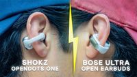 Bose’s open earbuds use precisely directed dynamic drivers to funnel sound down your ear canals, and that sound directly interacts with your eardrums. Bone conduction technology, like that found in the AfterShokz Aeropex, differs: the earpieces sit on top of your cheekbones and bypass the eardrum instead of sending vibrations directly to the cochlea.