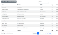 The Buttons extension for DataTables provides a common set of options, API methods and styling to display buttons on a page that will interact with a DataTable. It also provides plug-ins for file export (HTML5 and Flash), print view and column visibility...