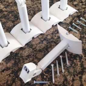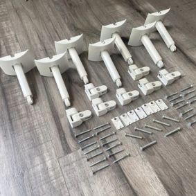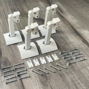 Unobtrusive wall mounting for Bose cube speakers. These brackets allow both horizontal and vertical adjustment of speakers.