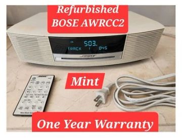 The Bose Wave Radio/CD Player AWRC1G combines elegant design with rich, room-filling sound in a compact all-in-one unit. Engineered with Bose's acclaimed waveguide speaker technology, this model features a built-in CD player, AM/FM tuner, and intuitive controls. Ideal for use in bedrooms, kitchens, or offices, the AWRC1G delivers impressive performance from a small footprint. Key Features: Top-loading single-disc CD player (CD, CD-R, CD-RW compatible) Digital AM/FM tuner with 6 presets per band Waveguide speaker technology for clear, full-range sound Large, easy-to-read display with clock and