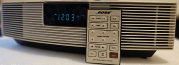 You can store up to six AM and six FM stations into memory, and the Wave, like its predecessor, is a proficient clock radio that gives you the option of awaking to a CD or a radio station. In contrast to Bose's SoundDock for iPods, this model has an auxiliary input (minijack) so that you can ... Bose Wave Music System Editor's note: We have changed the rating in this review to reflect recent changes in our rating scale. Click here to find out more. In creating the follow-up to its original Wave radio/CD player, Bose was on a mission to keep the unit the same size while improving its sound qua