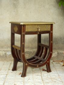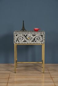 Antique brass trim adds an elegant touch to your sleeping space. Three drawers allow you to tuck away a variety of items so that they're close at hand whenever you need them. At just under 18" wide, this table is a great option for smaller areas ...