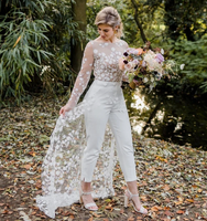 Wedding Jumpsuit/Pant Suits With Removable Skirt Long Train Applique Lace Bodice