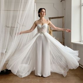 Plus Size Jumpsuit With Overskirt Train V Neck Long Sleeve · Regular price$0.00 USD $308.00 · $308.00 · View options · Simple O-Neck White Jumpsuit Wedding · Regular price$0.00 USD $273.00 · $273.00 · View options · Bridal Jumpsuit High Neck Illusion Sequins With Pants · Regular price$0.00 USD $255.00 · $255.00 · View options · White Jumpsuit V Neckline Boho Beach Bridal Pants Suit ·