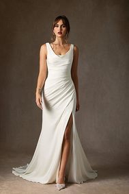 Exquisite midi and maxi dresses designed to accentuate and complement. Luxurious fabrics and delicate embellishments enhance feminine silhouettes suited for any bridal event.