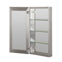 There's a lot to like when you look into the mirror of the Glacier Bay Rectangular Brushed Nickel Medicine Cabinet. Designed for your choice of either in-the-wall recessed or surface-mount installation, the cabinet has a high-quality aluminum frame and a sturdy powder-coated steel body. Inside its mirrored door you'll find 2 fixed shelves to maximize storage. Both shelves are removable for easy cleaning or to customize the cabinet's storage for taller items. The cabinet has a lifetime limited warranty.