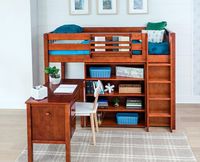 Each dresser, bookcase or desk fits perfectly underneath your loft, but they can also easily slide out as individual pieces of furniture. Learn how to add storage or study to any low, mid or high loft bed with our Fit & Measurement Guide. Minimize clutter and maximize floor space with integrated drawers, shelves, and cubbies designed to keep books, toys, and belongings tidy.
