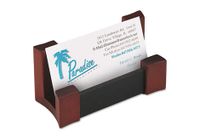 Well, there is a hard plastic holder made that is credit/business card sized. I have seen them used to hold security cards or a few business cards. A slot that's slightly wider than the holder and not deep would hold it there for display.