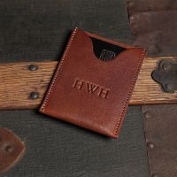 This card case is handcrafted in America from full-grain American leather. Designed to hold business cards, credit cards, or IDs, this compact case features edge coating and stitching for added durability. It's personalizable and ships free!