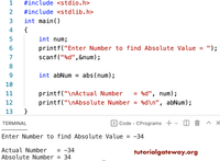 printf("absValue = %u\n", absValue);