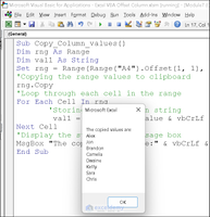August 9, 2024 - Range(“A1:A6”) will select the range A1:A6, and Offset(4, 1) will move 4 rows downward from cell A1 and 1 column to the right side. The equal number of cells in the range A1:A6 will be selected. ... End the sub-procedure of the macro. ... VBA has its own separate window to work with.