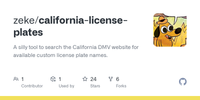 GitHub - zeke/california-license-plates: A silly tool to search the California DMV website for available custom license plate names.