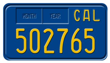 Our license plates are painted with year correct colors. ... California Motorcycle License Plates: Custom, Replica, Vintage & Antique Custom California motorcycle license plates embossed or stamped with your custom lettering.