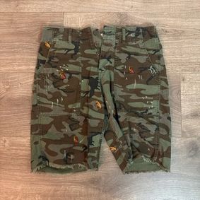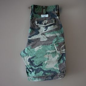 These cargo shorts re-create the vintage quality of a standard-issue piece with camo slub canvas that is pigment-dyed for a timeworn look. Read More ... Classic Fit: sits at the waist.