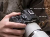 November 4, 2025 - I have spent far too long looking at this image and have convinced myself that it is not an APS-C camera such as the EOS R7 Mark II, but instead is the EOS R6 Mark III. The first thing I noticed is the EVF bump, it has a similar shape to the hard angles of the EOS R7. Though, with the orientation of the image, the size and angles may be distorted. Then I look a little closer, and the eyecup is bigger and a different shape than what we see with Canon's APS-C cameras.