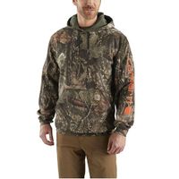 Original price was $59.95. Closeout price is $39.95.From hunting season to weekend projects, the Carhartt Midweight Camo Sleeve Logo Hooded Sweatshirt offers easy wearing warmth. Carhartt durability and classic hoodie comfort mean you can move through the woods or haul supplies with equal ease. A midweight cotton blend offers everyday versatility.The Carhartt Midweight Camo Sleeve Logo Hooded Sweatshirt features:10.5-ounce, 50% cotton/50% polyester blendCarhartt-strong, triple-stitched main seamsThree-piece jersey-lined hood with drawcordRib-knit cuffs and waist help keep weather outFront h