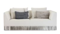 Canapé à franges, en cuir italien fait entiÚrement à la main.3 coussins inclus: crÚme, gris et beige.