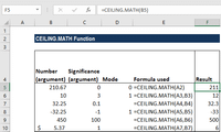 The CEILING.MATH function rounds a number up to the nearest integer or to the nearest multiple of specified significance. It also specifies whether the number is rounded toward or away from 0 dependin