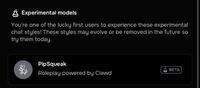 So I noticed something odd. I saw the “Pipsqueak” chat style pop up once in my Character AI, but when I went to the chat style selection page, it wasn’t there at all.