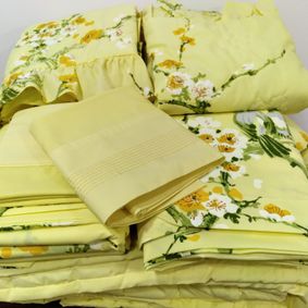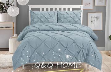 Double, queen and king sets include: 1 comforter, 2 pillow shams, 2 square cushions and 1 breakfast cushion