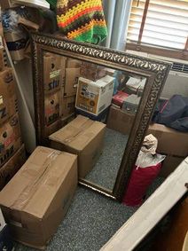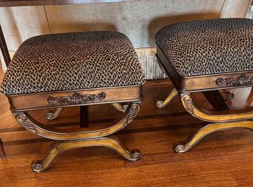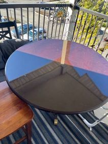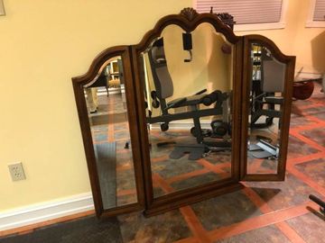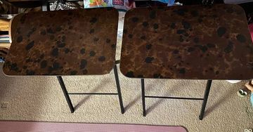 Wood/Metal Plant Stand-Excellent Condition! ... SET of 2 SMALL GOLD Framed MIRRORS-Excellent Condition! ... Small Folding Wood Table Unique Design-Excellent Condition! ... Used Brown reclining loveseat with Manual & Power Recliners!
