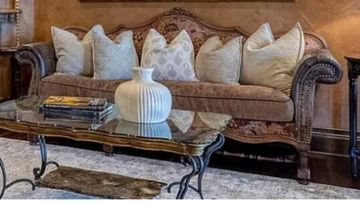 TV stand. ALL BLACK METAL AND GLASS MUST HAVE ‼️‼️‼️ ... Lulu & Georgia Couch - Barely Used!