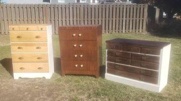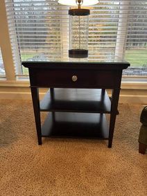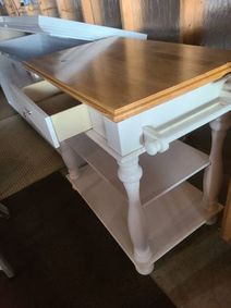 Cheney · Hunter Green Table with Drawer · $50 · Cheney · Natural Wood 3 Tier Plantstand · $40 · Cheney · Lighly Distressed Dark Teal Nightstand with Drawer · $50 · Cheney · Distressed Sage Green Entryway Desk with Drawer · $60 · CHENEY · Farmhouse Cedar Pet Bed ·