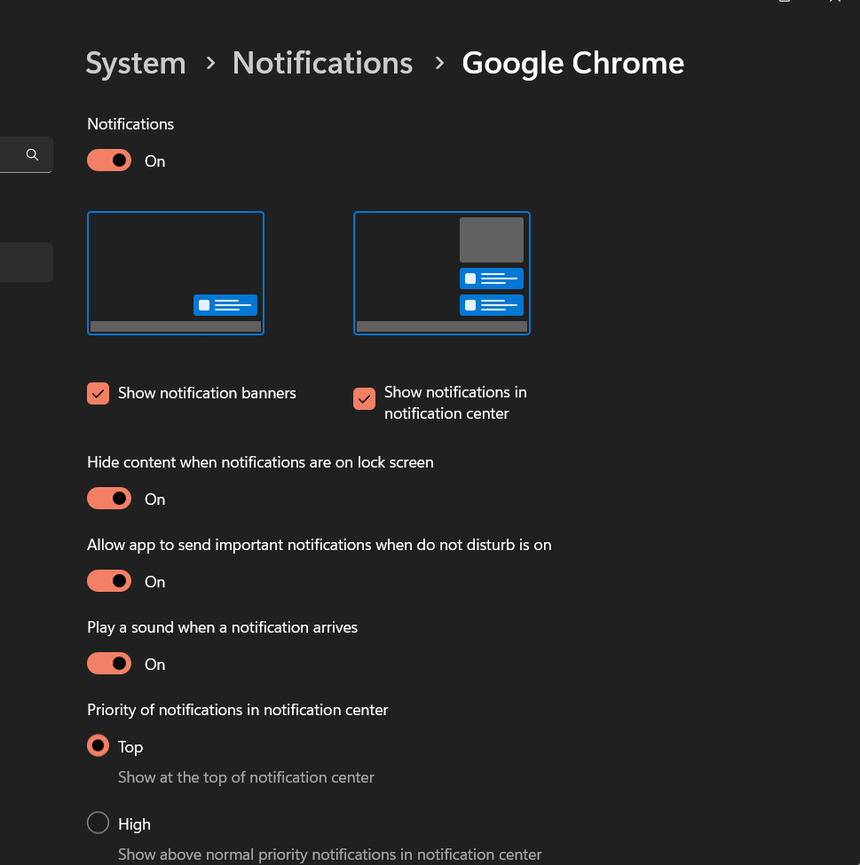 Brand new Lenovo V15 G2 ALC laptop with Windows 11 home. On the System->Notifications screen in the Settings app, I can turn on notifications for Google Chrome. but I do not get the banners or notifications on the notifications center, I can hear the… More on learn.microsoft.com