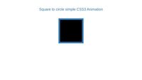 <div class="container animated zoomIn"> <div class="row"> <h1 class="text-primary text-center">Square to circle simple CSS3 Animation</h1> <div class="animation"></div> </div> </div> ... h1 { margin-top: 50px; } .animation { margin: 0 auto; margin-top: 70px; width: 250px; height: 250px; background-color: black; border: 15px solid #337ab7; animation: square-to-circle 1s .83s infinite cubic-bezier(1,.015,.295,1.225) alternate; } @keyframes square-to-circle { 0% { border-radius:0 0 0 0; background:black; transform:rotate(0deg); } 25% { border-radius:25% 25% 25% 25%; background:black; transform:rotate(45deg); } 50% { border-radius:50% 50% 50% 50%; background:black; transform:rotate(90deg); } 75% { border-radius:75% 75% 75% 75%; background:black; transform:rotate(180deg); } 100% { border-radius:100% 100% 100% 100%; background:black; transform:rotate(360deg); }