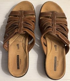 Collection by Clarks Ultimate Comfort Light Pink Faux Leather Slide Sandals · $35 · Size: 7.5 Clarks · style_exchange · 2 · CLARK'S LEATHER Metallic Bronze HUARACHE SLING BACK SANDALS SZ 10 M Bendables · $28 · Size: 10 Clarks · clk_boutique · CLOUDSTEPPERS by Clarks Slide Sandals Step June Shell Rose Gold 9.5 ·