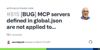 [BUG] MCP servers defined in global.json are not applied to projects · Issue #515 · anthropics/claude-code