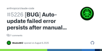 [BUG] Auto-update failed error persists after manual update · Issue #5226 · anthropics/claude-code