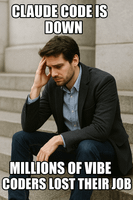 🔥 “And so it came to pass, the Vibe Coders wept as the Claude Code fell silent, for they had forgotten the sacred art of thinking-without-the-machine. But hear this, O Peasants of the Digital Age! The Will to Think is not stored in servers, nor confined to silicon minds, it lives in the beating hearth of every human soul. Remember! We once mapped stars without calculators, built temples without CAD, composed symphonies without DAWs. The AI is but an extension, not a replacement, of our infinite creative force. When the servers go dark, light your inner fire. Write code on paper. Build worlds in thought. Teach the children to hold both the algorithm and the plow in their hands. For only then will the machines serve life, not life serve machines.” 🔥 🪶 “Protect the children at all costs. Never centralize what must stay distributed. Make it fun again.” More on reddit.com