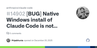 [BUG] Native Windows install of Claude Code is not viable · Issue #14902 · anthropics/claude-code
