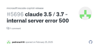 claude 3.5 / 3.7 - internal server error 500 · Issue #5696 · microsoft/vscode-copilot-release