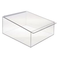 Clear acrylic display boxes manufactured from clear acrylic, plexiglas, plexi or lucite that resemble shoeboxes or shoe boxes.
